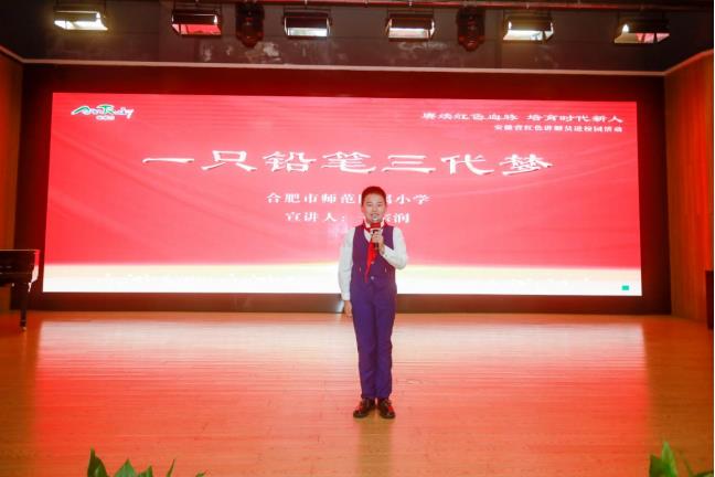 據了解,宣講組先后走進安徽建筑大學、安徽農業大學、中國科學技術大學附屬中學、合肥市師范附屬小學等多所安徽大中小學進行紅色宣講。全國紅色旅游講解員萬辰璐、牛炎奕等通過講述《一張特殊的夫妻照》《致敬七一勛章獲得者——馬毛姐》《淮海戰役之小竹竿的故事》《江防圖》《一條通往繁華的路》等紅色主題故事,將一個個鮮活的革命斗士、一段段浴血的革命歷史展現在學生眼前,帶領大家重溫紅色歷史,感受革命精神。吳兆翕、王宗潤等“紅領巾”講解員為現場觀眾帶來了《英雄在我心中 英雄精神萬古長青》《一只鉛筆三代夢》等紅色主題演講。講解員們極具吸引力、感染力的講解,引發了大家的情感共鳴,贏得了陣陣掌聲。
